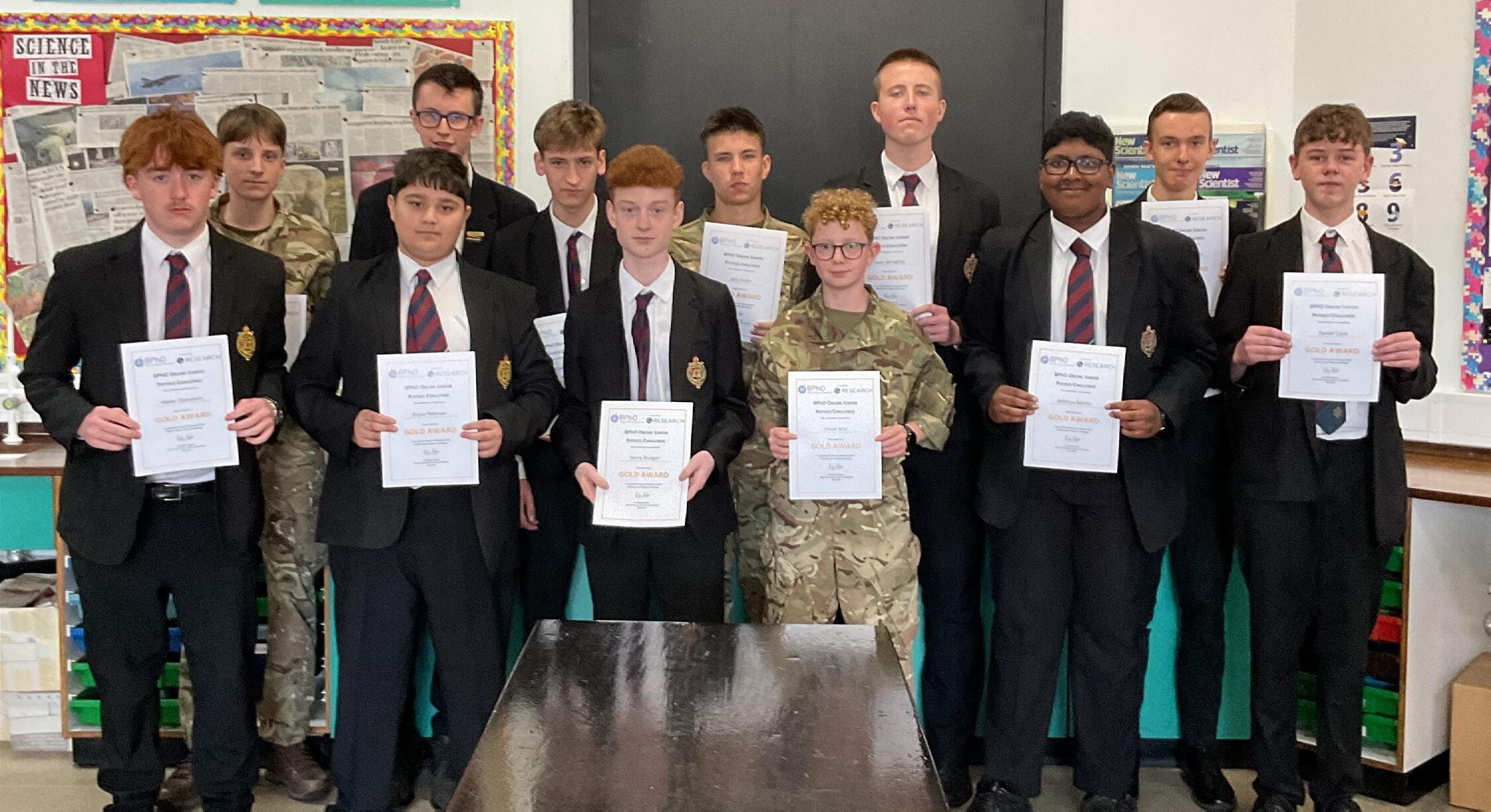 Two students, Morgan Arrowsmith and James Beard have received Emerald Certificates for placing in the top 200 entries nationally. Yixin Xie has placed in the top 50 and, therefore, has received an invitation to the SPC Summer School at Churchill College and the Cavendish Laboratory in Cambridge in July. Congratulations to all three students as they completed this independently and in addition to their A level studies.