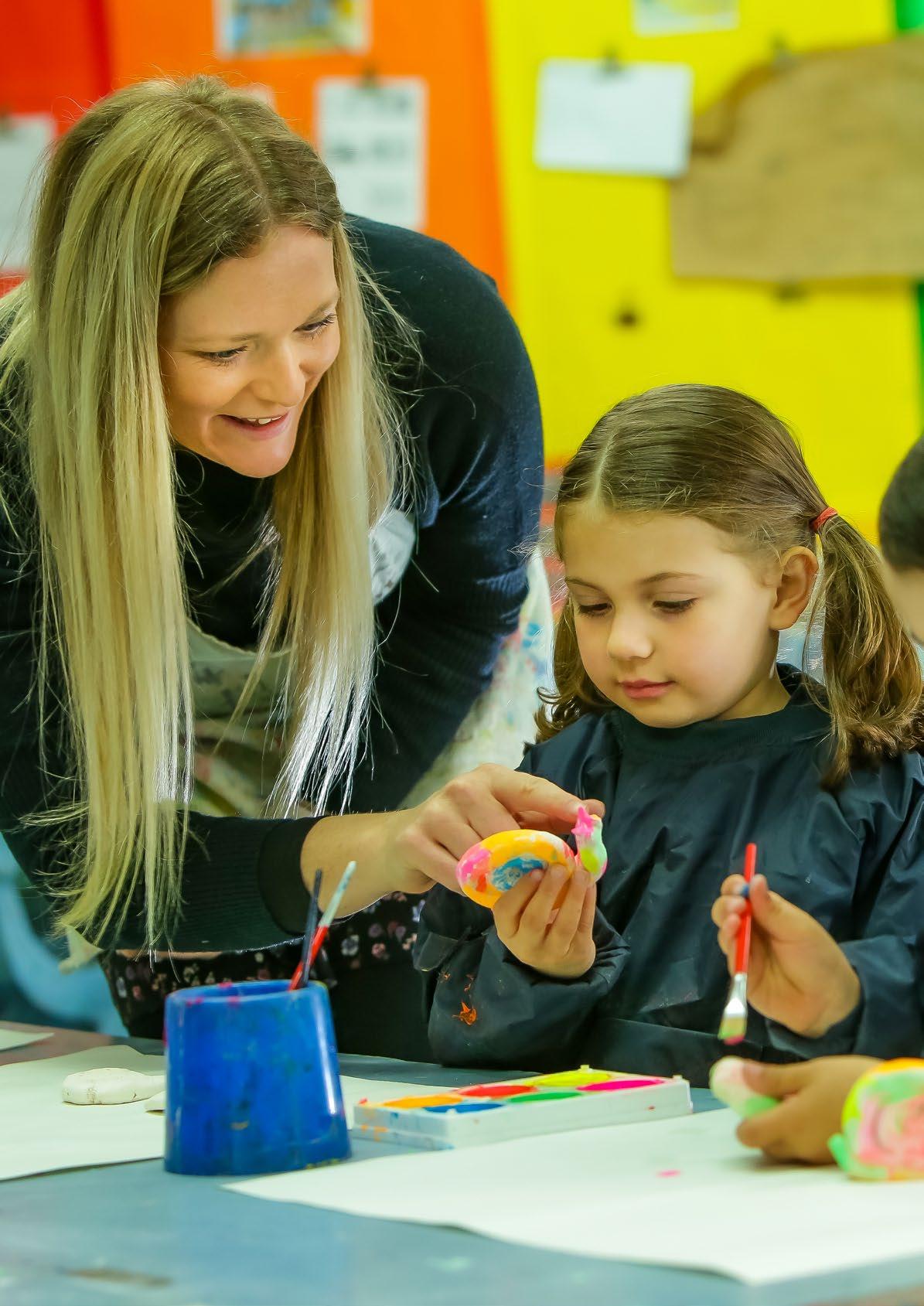 Art lessons take place in the Art Studio and art experiences involve engagement with the five senses. Sometimes lessons take place outdoors and involve collecting natural materials. Exposure to drawing, painting, clay and other mediums provides the perfect place for the students to develop their creativity and express themselves.