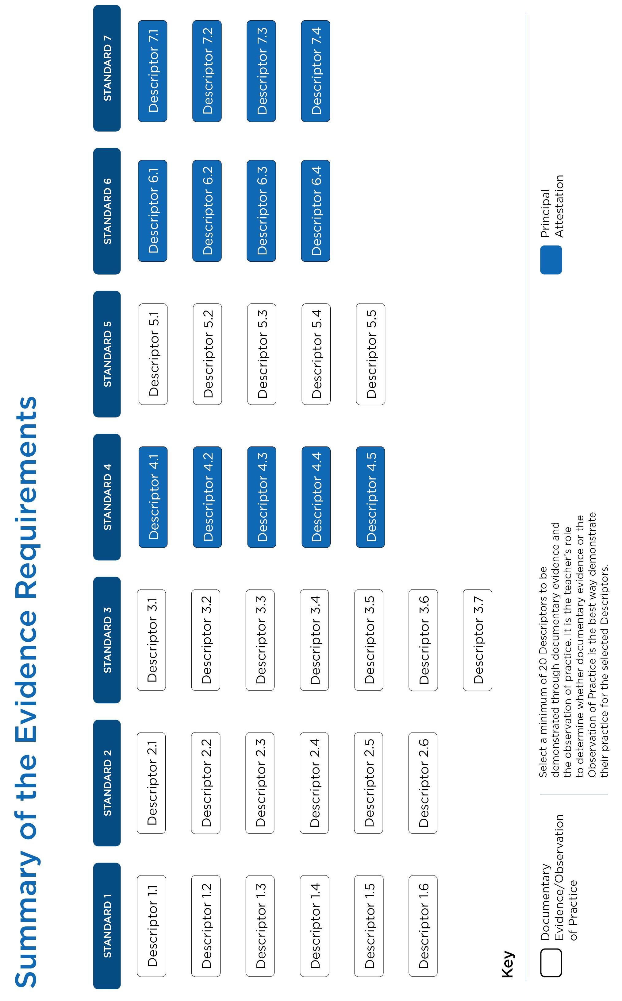 Use the list of Descriptors for each Standard below as a guide to determine whether the applicant’s practice consistently aligns to the Standards for Experienced Teacher accreditation.