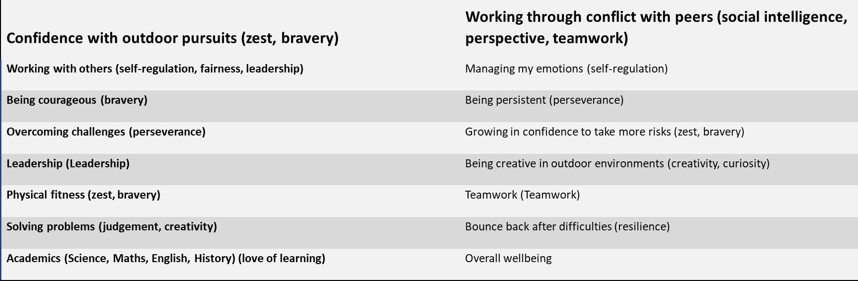• Professional development is required to build common understandings and specific skills – e.g. abseiling, climbing, water activities