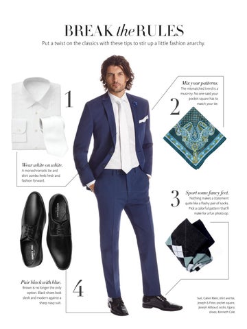 Suit, Calvin Klein; shirt and tie, Joseph & Feiss; pocket square, Joseph Abboud; socks, Egara; shoes, Kenneth Cole