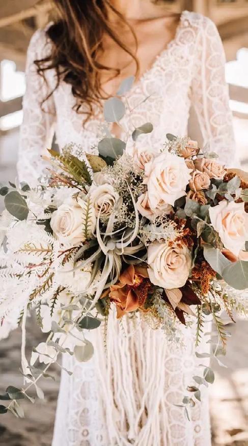Na mesma linha da decoração, esse acessório tra dicional ganha ares mais chamativos, e serão mais volumosos. Os maxi buquês voltam com tudo em 2023, podendo ser mais largos ou mais longos. Além deles, as composições de buquês monocro máticos serão mais vistas.