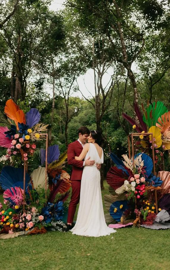 Os casamentos de 2023 serão cenário de uma re volução verde. Plantas e flores de todos os tipos –principalmente as naturais, mas com espaço para as flores preservadas – vão invadir os enlaces. Este elemento decorativo tem o poder de transfor mar qualquer ambiente e, por isso, volta a ser um item essencial, que havia perdido espaço para o minimalismo de anos atrás.