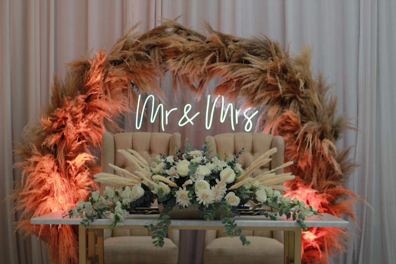 Predominan las decoraciones con estéticas florales; es decir, que no solo se incorporan centros de mesa o florería en las estructuras de las locaciones, sino que pueden haber ilustraciones de flores, flores preservadas, papel tapiz o hasta flores de papel en espacios como el seating plan, la mesa de dulces y las amenidades. También se pueden colocar cortinas de borlas y tendederos de fotos instantáneas.