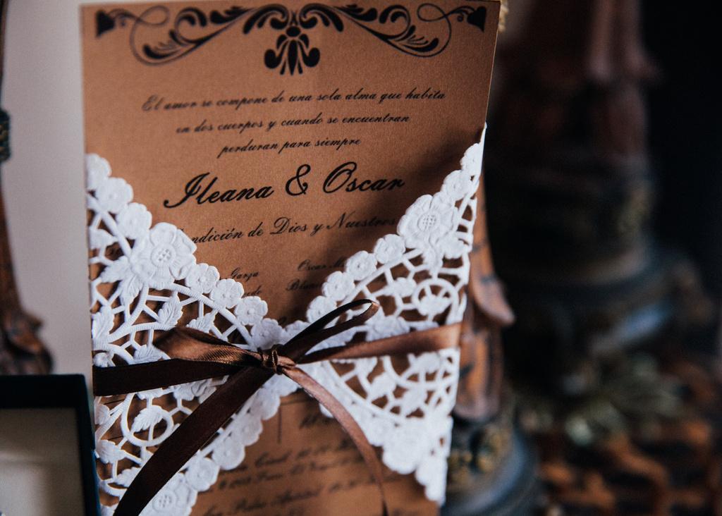 Usar tipografías suaves y estilizadas, incluyendo cursivas. Además de la información imprescindible para el evento, incluir datos como los nombres de los papás de la pareja o sus padrinos. Estas invitaciones se entregan cerradas, en sobres tradicionales o con sellos de cera.