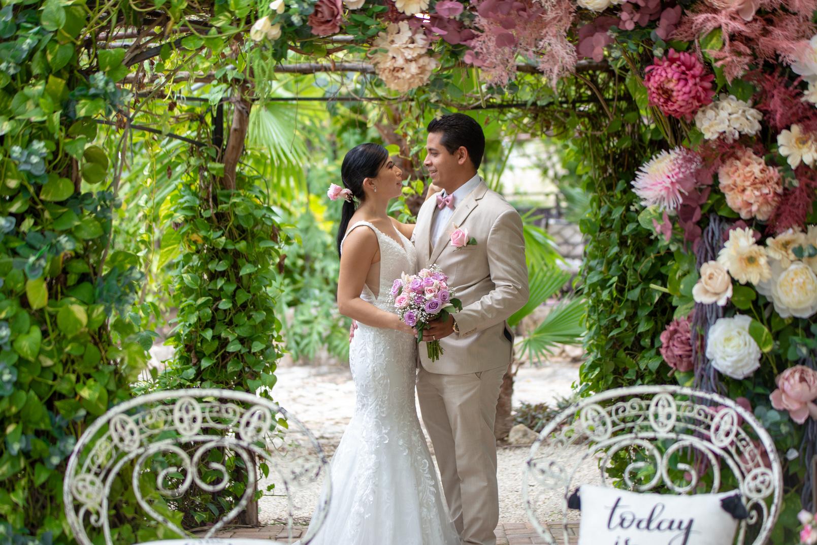 Hojas verdes, follaje y ramas suelen distribuirse en techos, muros y mesas. Palmas verdes, flores del paraíso y dalias son algunas de las favoritas para los ramos de novia, mientras que en las locaciones se pueden incluir tanto árboles frutales en macetas como adornos de naturaleza muerta.