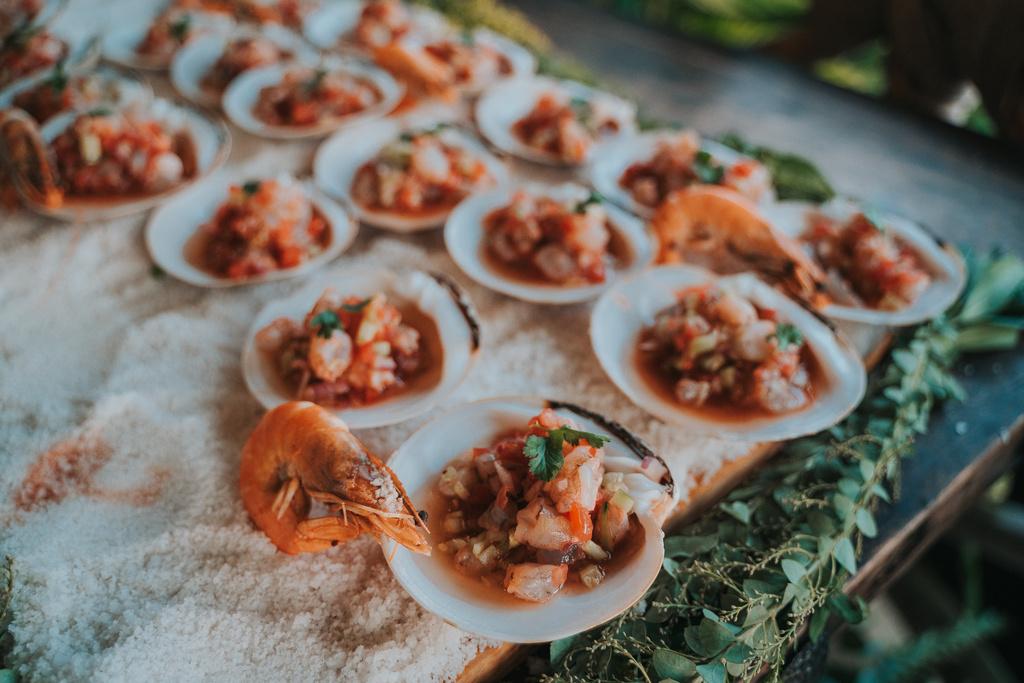 Los postres tradicionales mexicanos también son populares en este tipo de bodas, pero se puede ofrecer un menú con platillos campestres, como pato y conejo. En estas bodas es muy importante elegir proveedores locales y productos de la estación, para disminuir la huella ambiental y preservar los