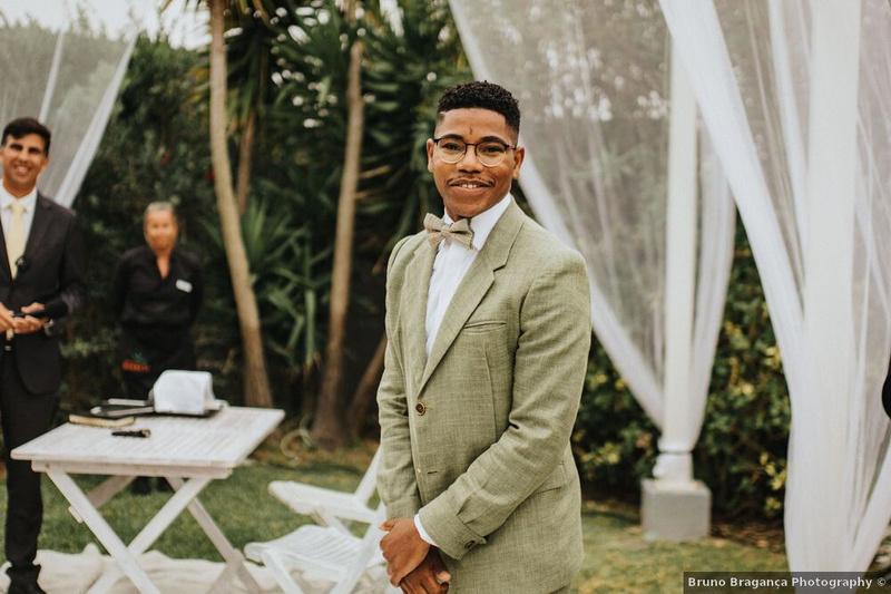 Os noivos podem usar fatos em tons claros que exaltem o minimalismo da decoração.