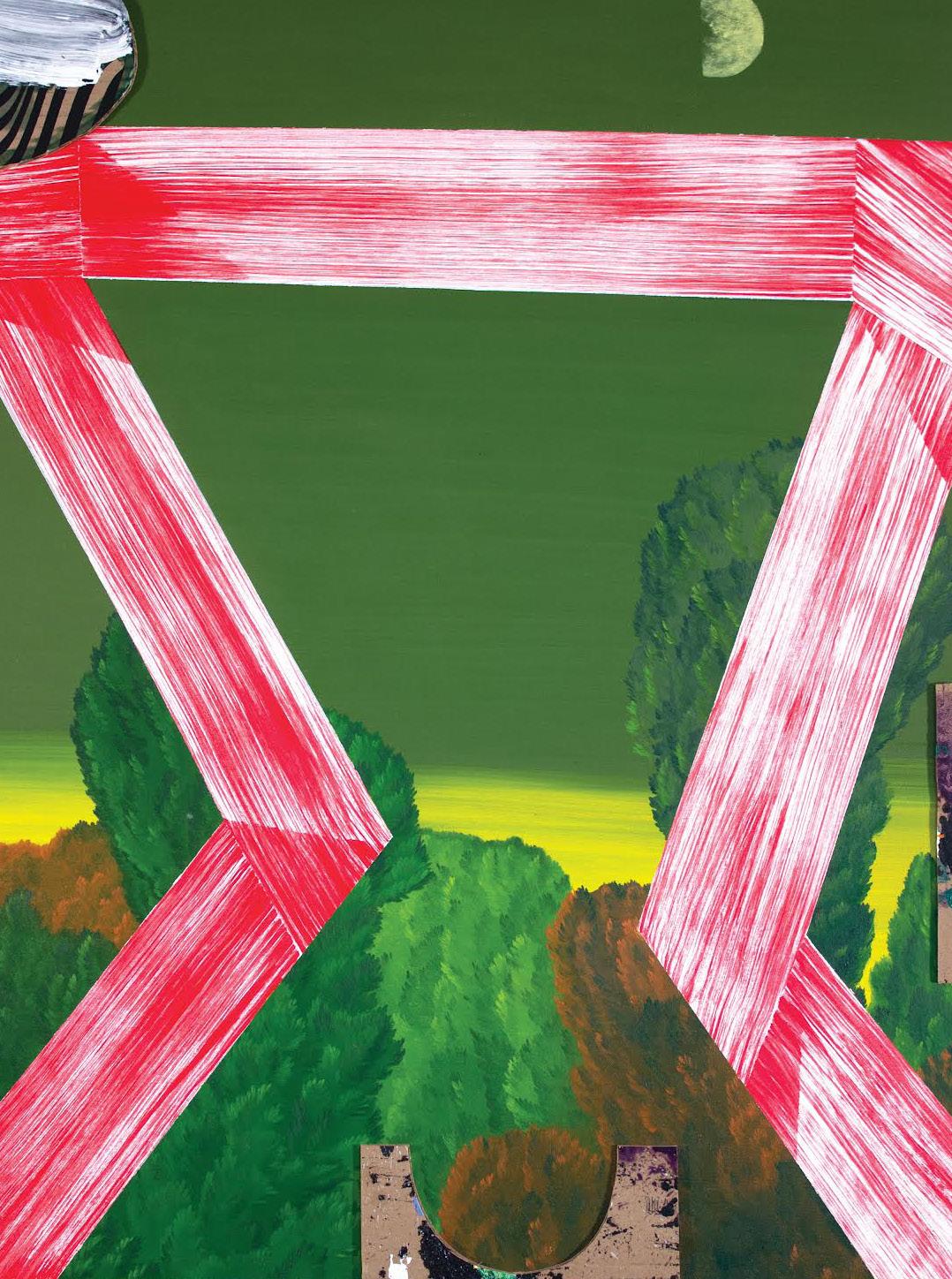 Matthew Mann, MoonlightSinew, 2022, oil, acrylic, and collage on canvas Page 34: Clark V. Fox, The Three Crosses, 1968, acrylic on canvas