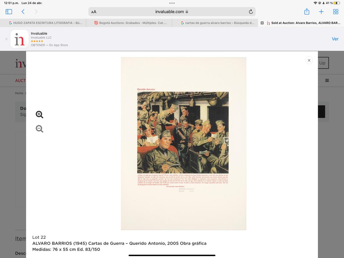 Si estas interesado en alguna de las obras haz una captura de pantalla de la obra y envíanoslo a WhatsApp en +57 310 2693912 con tu nombre y el número de lote especificado