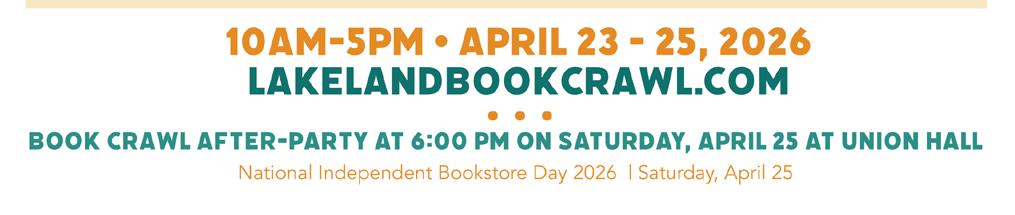 On April 23-25, the 5th Annual Lakeland Book Crawl will take place. It will feature seven local establishments that will be offering special deals, and the Book Crawl will culminate with an After Party at Union Hall on Saturday, April 25, which is National Independent Bookstore Day.