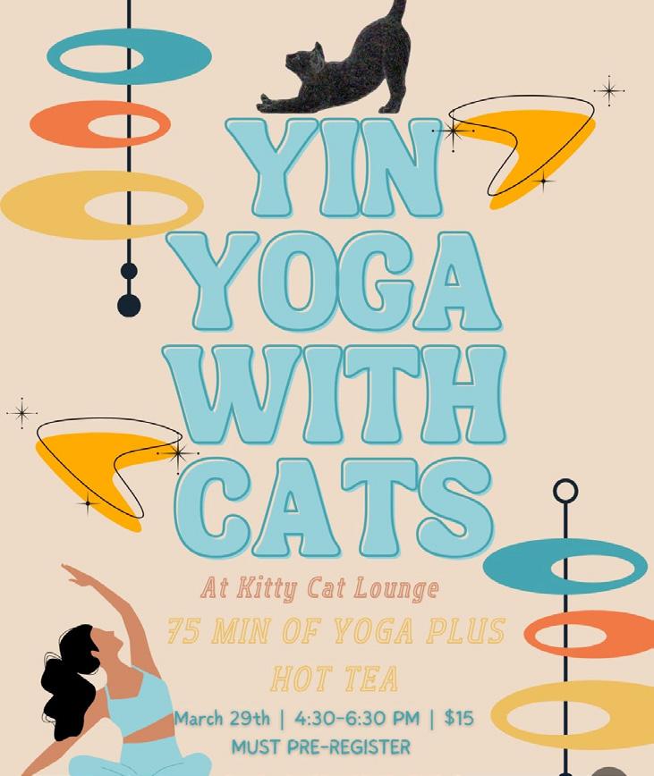 Come unroll your mat and melt into a dreamy evening with the sweetest little fur angels at Kitty Cat Lounge. Spaces are limited, and pre-registration is required. Come stretch, sip, breathe… and let the kitties do the rest.