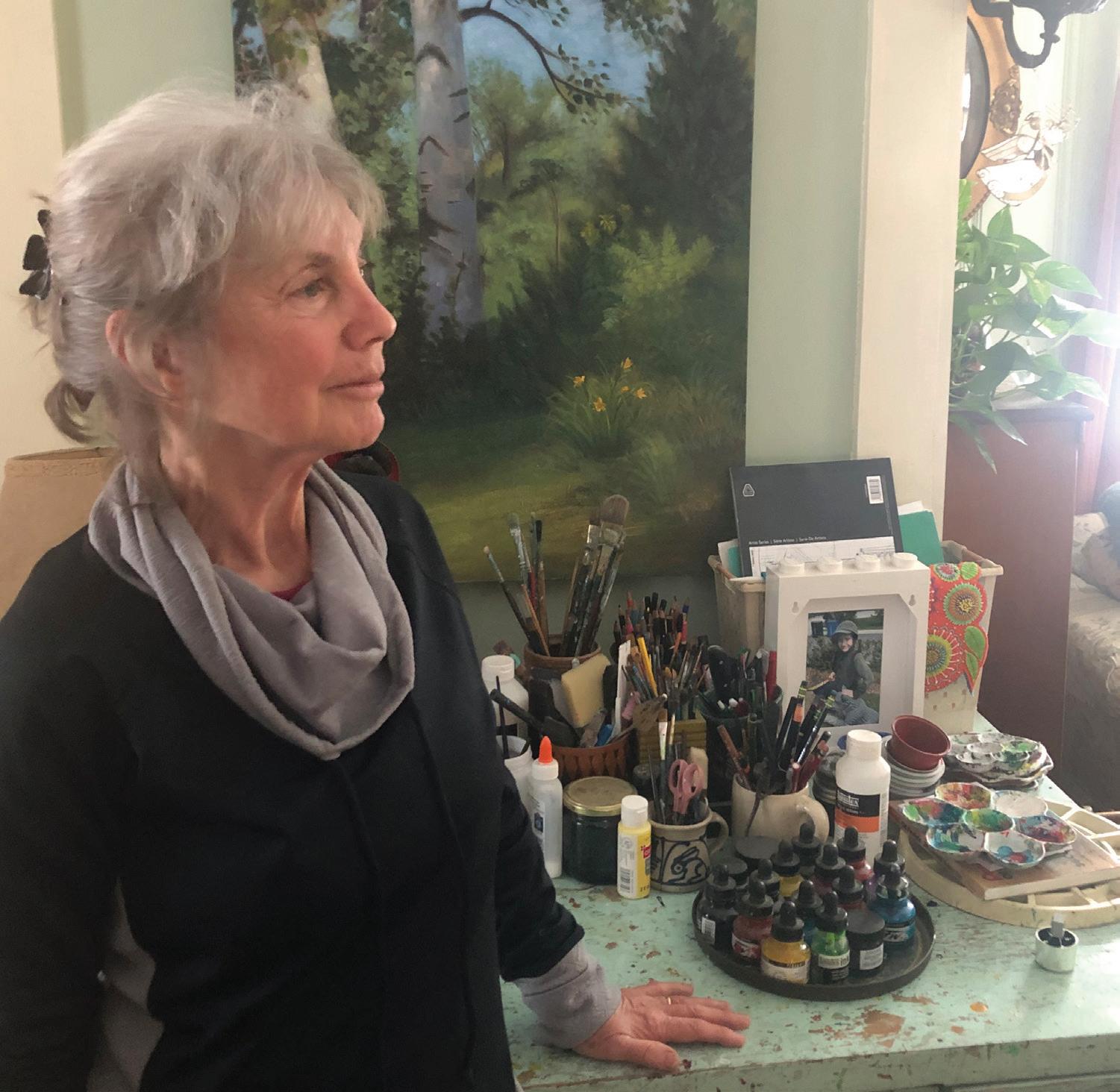 Marion grew up in Center Ossipee. Her work has been shown in Minnesota, North Dakota, Kentucky, and Texas, as well as New Hampshire. She has illustrated over a dozen books, and her artwork has also appeared as illustrations in several literary magazines. She studied en plein aire painting with Stony Jacobs in Whitefield, N.H., and loves painting outdoors. She has painted large “porch paintings,” decorated antique wooden ironing boards, developed a line of artistic cards, and published a book with her husband titled “Working on Becoming Invisible.”