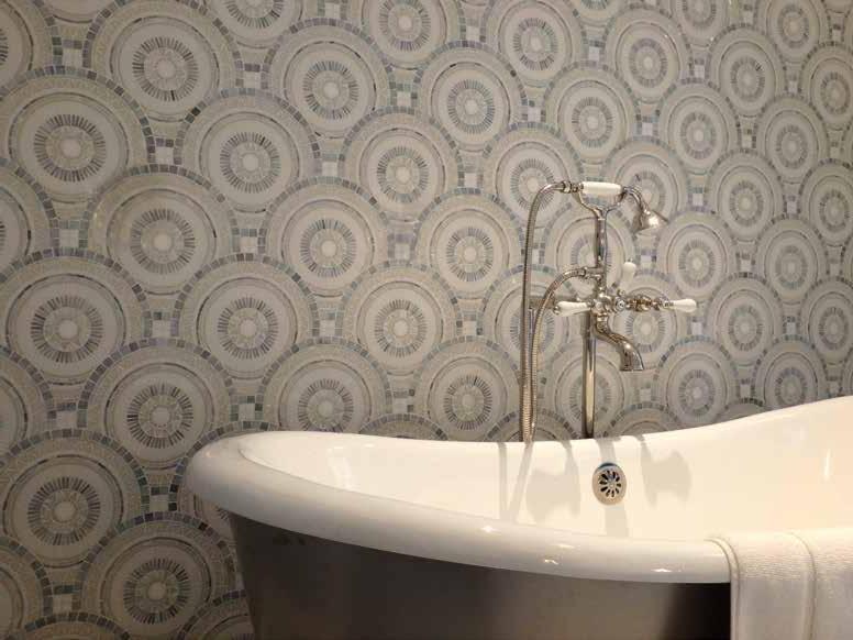 She continues, “The fire feature is made of glass, in either round or shattered style. The shattered glass has the appearance of coal, and the glass comes in a choice of 12 to 13 different col-