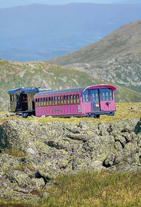 rounding the big lake. Each train has a first-class and coach section, with a gift shop that has snacks and beverages available. Looking for another experience along the railways? Lake Winnisquam Granite State Rail Bikes are custom-made, giving you a self-propelled 5-mile ride through historic rail lines around the Lakes Region.