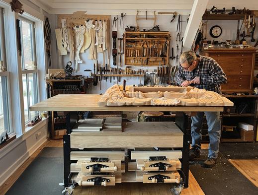 Nationally recognized woodcarver and furnituremaker, Daniel Faia, has relocated his studio to Sanbornville, NH. The new space is a large, bright, groundlevel unit in the historic Garvin Building, conveniently located in the center of town. As a longtime resident of the area, Dan is excited to bring his studio home to the Lakes region. He believes this will be an ideal spot for his commission work and small group workshop program. With over 30 years of experience as a professional maker and educator, Dan develops and teaches each workshop with a focus on
