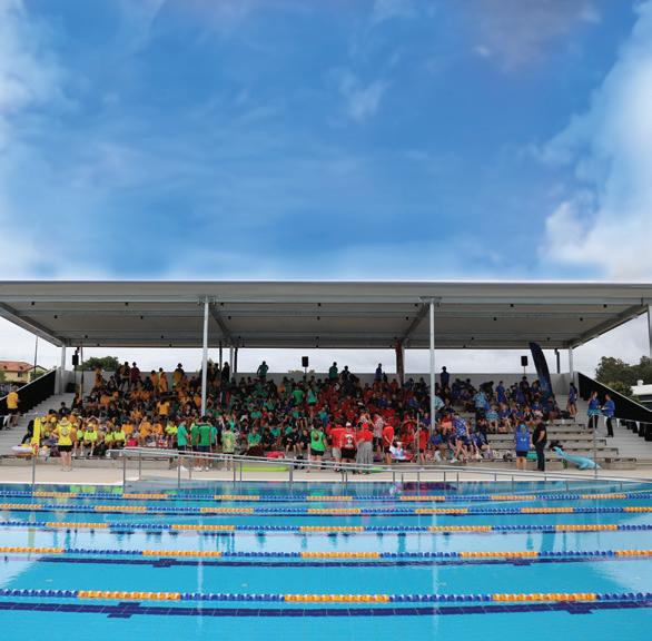 Our Aquatic Precinct showcases an 8-lane, 25m heated swimming pool equipped with ramp access as well as an indoor heated 20m Learn to Swim pool. Adjacent to the outdoor pool is a shaded, elevated Grandstand that seats 500 spectators.