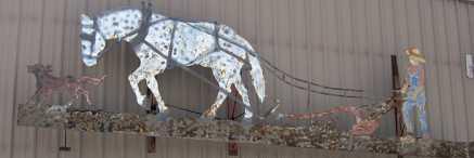 Heritage Acres has added a third pole building to store all of the machinery and items they have received. One building houses Prairieville Mall. Rather than create a Main Street with numerous small buildings, the Mall is a 1940s Main Street of business facades constructed inside — each business filled with related artifacts.