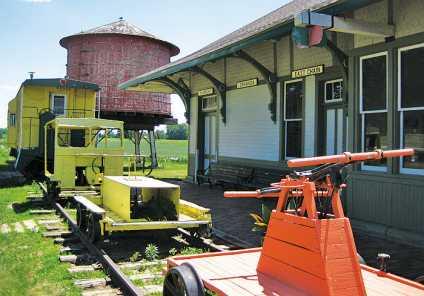 The festivals expanded beyond the Fourth of July with the addition of a Threshing Day and a Fall Festival (though Covid and a lack of volunteer help have put a strain on that). The number of buildings expanded even more. There is now a granary, chicken house, windmill, silo, log cabin, and blacksmith shop. In front of the depot (from Welcome, Minn.) is a track with a caboose, and railroad crew maintenance cars. The railroad mainte-