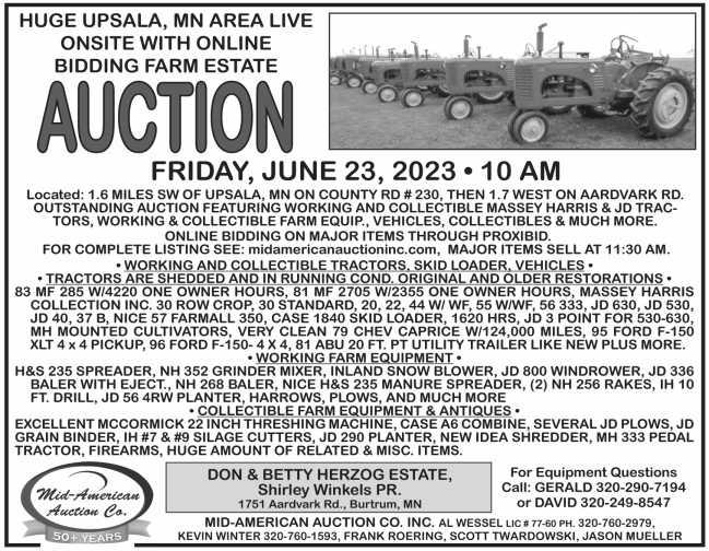 Classified Advertising: $21.99 for seven (7) lines for a private classified, each additional line is $1.40; $26.89 for business classifieds, each additional line is $1.40. Classified ads accepted by mail or by phone with VISA, MasterCard, Discover or American Express. Classified ads can also be sent by e-mail to theland@TheLandOnline.com. Mail classified ads to The Land, 418 South Second St., Mankato, MN 56001. Please include credit card number, expiration date and your postal address with ads sent on either mail version. Classified ads may also be called into (800) 657-4665. Deadline for classified ads is 5 pm on the Friday prior to publication date, with holiday exceptions. Distributed to farmers in all Minnesota counties and northern Iowa, as well as on The Land’s website. Each classified ad is separately copyrighted by The Land. Reproduction without permission is strictly prohibited.