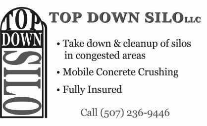Take-down & clean up Specializing in silos in congested areas. FULLY INSURED mobile concrete crushing. 507-236-9446