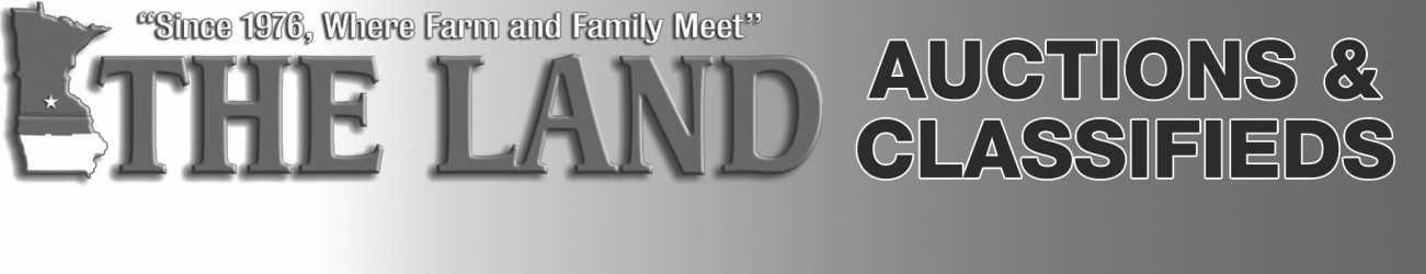 Classified Advertising: $21.99 for seven (7) lines for a private classified, each additional line is $1.40; $26.89 for business classifieds, each additional line is $1.40. Classified ads accepted by mail or by phone with VISA, MasterCard, Discover or American Express. Classified ads can also be sent by e-mail to theland@TheLandOnline.com. Mail classified ads to The Land, 418 South Second St., Mankato, MN 56001. Please include credit card number, expiration date and your postal address with ads sent on either mail version. Classified ads may also be called into (800) 657-4665. Deadline for classified ads is 5 pm on the Friday prior to publication date, with holiday exceptions. Distributed to farmers in all Minnesota counties and northern Iowa, as well as on The Land’s website. Each classified ad is separately copyrighted by The Land. Reproduction without permission is strictly prohibited.