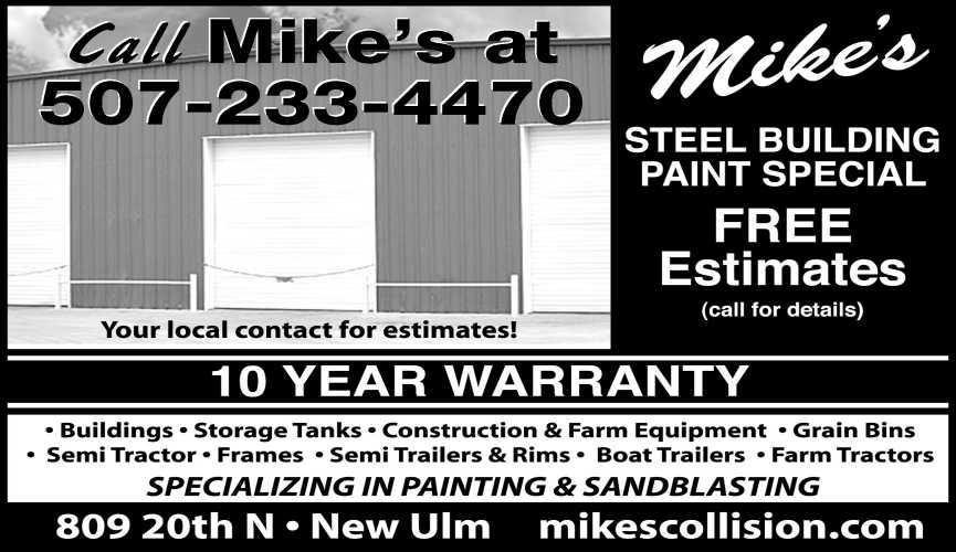 CALL TODAY TO SCHEDULE A NO-OBLIGATION CONSULTATION. 855-612-8038 www.greenerworldsolutions.com Serving Minnesota, South Dakota, North Dakota, Wisconsin and Iowa. MN LIC BC639351 Spray foam insulation prevents condensation in barns. Call today for a free quote. 855-612-8038 Page 2 - April 30/May 7, 2021 THE LAND, Advertising Supplement Page 2 - September 2023 THE LAND, Advertising Supplement CALL TODAY TO SCHEDULE A NO-OBLIGATION CONSULTATION. 855-612-8038 www.greenerworldsolutions.com Serving Minnesota, South Dakota, North Dakota, Wisconsin and Iowa. MN LIC BC639351 Spray foam insulation prevents condensation in barns. Call today for a free quote. 855-612-8038 Page 2 - April 30/May 7, 2021 THE LAND, Advertising Supplement