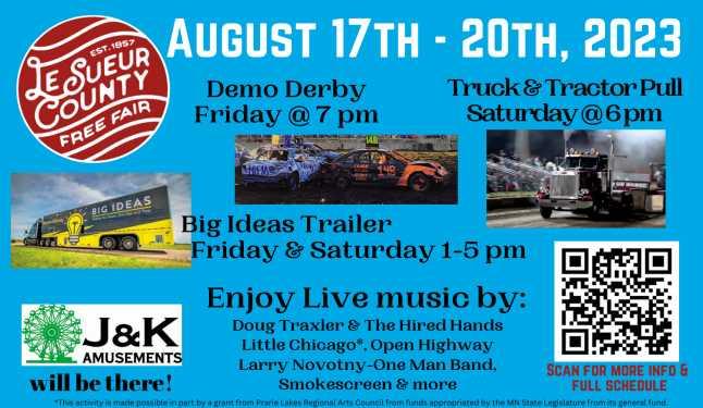 Fairgrounds-St. James, MN. July 13th-16th Check us out at www.watonwancountyfair.com Saturday, July 15th Softball Tournament -8am Butterfield FFAFreePancake Breakfast 8am J&K Amusement -noon Pony Rides Dart Tournament -1pm Ranch Rodeo -1pm Bingo -1pm Demolition Derby -5pm Band -Out of Line -8:30pm Fireworks -10:15pm Sunday, July 16th Horse Fun Show -11am NMMTPAMini Tractors 11AM J&K Amusement -noon Kids Pedal Pull -12:30 Registration Kids Medallion Hunt -3pm Music -Steve Lang -12:30pm Sr.Recognition/Farm Family -1pm Fair Closes -4pm PAGE 26 www.thelandonline.com — “Where Farm and Family Meet” THE LAND — JUNE 9, 2023 F14