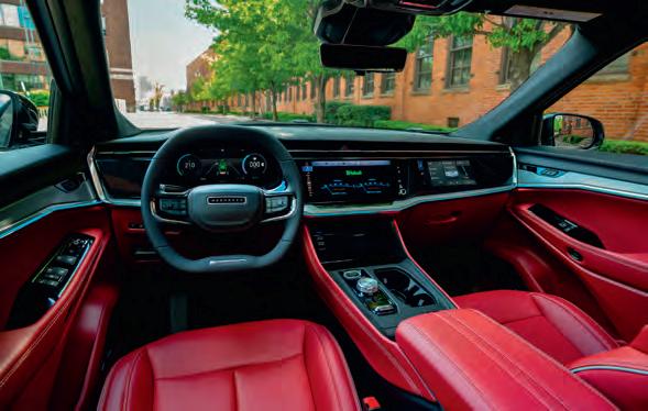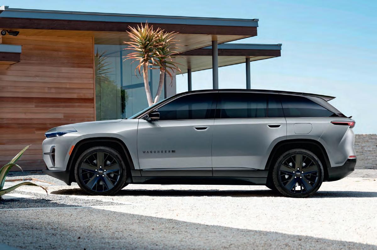 There’s a new Jeep on the way –and it’s going to be a bit mega. The Wagoneer S, a racy looking large SUV, is the company’s ‘full electric flagship’, its styling hinting at an output of 600bhp and 3.5-sec 0-62 time. This comes from a pair of 250kW ‘electric drive modules’ (it’s okay to say ‘motor’, really), one at each end, which give the vehicle all-wheel drive. Jeep’s Selec-Terrain traction management system equips it with Auto, Sport, Eco, Snow and Sand drive modes, while a 400volt, 100.5kWh battery pack allows fast charging from 20% to 80% in 23 minutes. There’s a lot more to come in the way of info – not to mention prices. But Jeep promises ‘more than 45 inches of highdefinition sculpted screen space’ linked to its latest Uconnect 5 media system, plus a 19-speaker audio system with a 1160-watt amp and 12-inch sub which ‘makes it feel as though passengers are