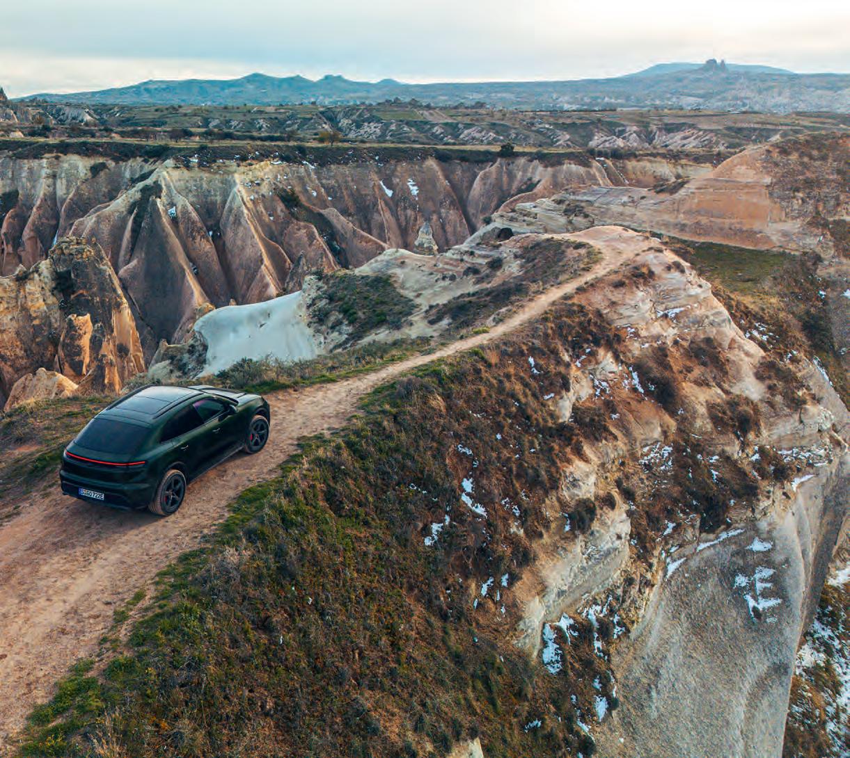 After the meal, Atıl takes us out to see a stunning gorge. A steep track wide enough just for us leads downward. There’s a phone number written on the striking rock walls. “That’s the towing service, in case anyone in a rental car gets stuck. It happens often enough,” explains the guide. The Macan 4S handles the track with ease – on the way down and then back up again.