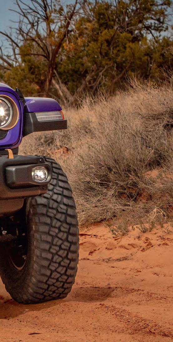 At the top of the range, the Compass 4xe features 10mm lifted suspension and heavierduty bumpers with improved approach, departure and breakover angles. It’s also equipped with taller tyres whose higher sidewalls improve tractability on loose and soft terrain. Reduction gearing of 14:1 means serious crawling ability, and the cabin is trimmed in tough, durable materials to resist the knocks and scrapes of use in the great outdoors.