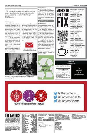 Business Office 614-292-2031 Newsroom 614-292-5721 Advertising advertising@thelantern.com Classifieds classifieds@thelantern.com FOLLOW US thelantern.com @TheLantern @TheLanternOSU facebook.com/TheLanternOSU @LanternOfficial