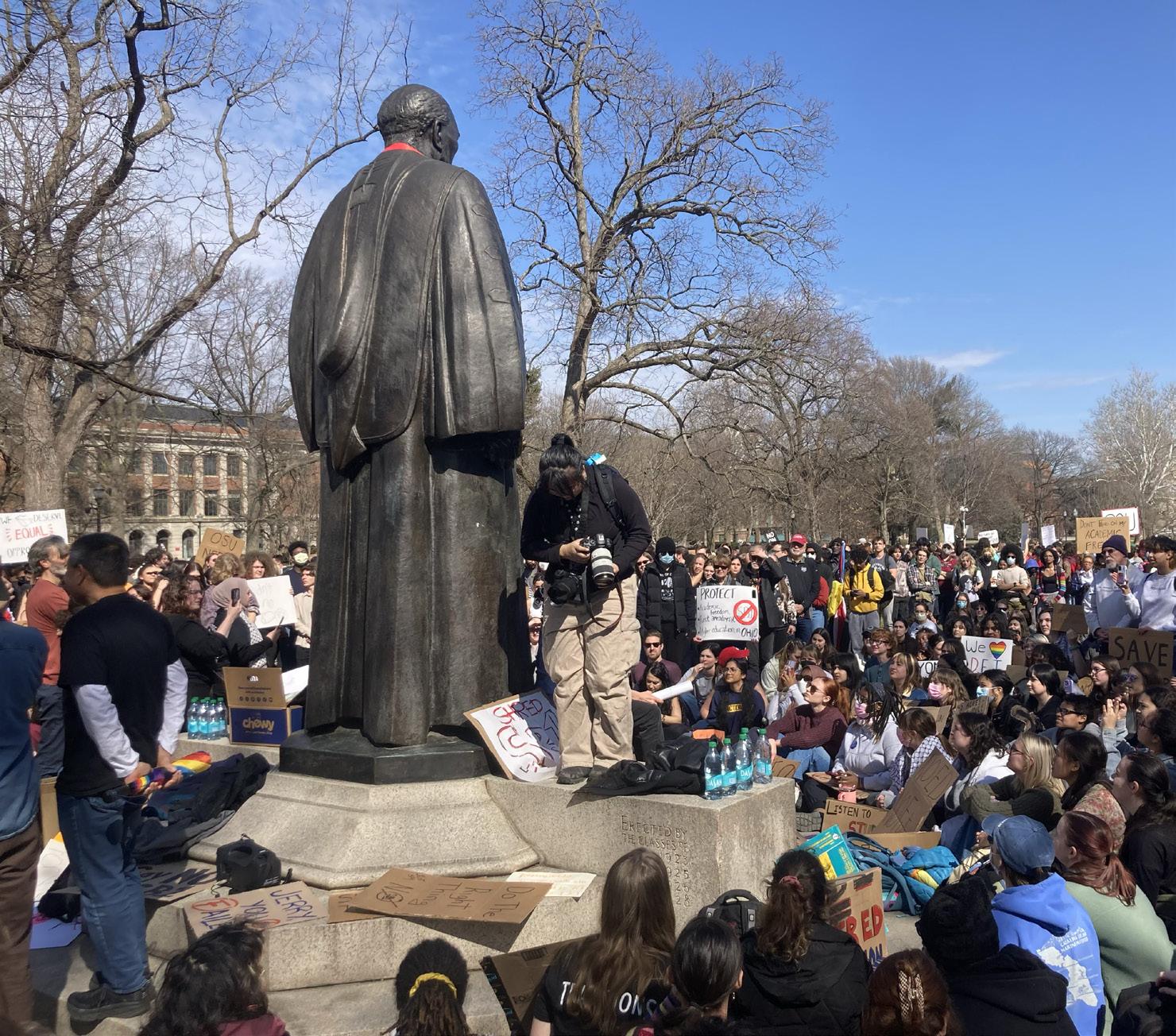 RIGHT: Students protesting against Ohio Senate Bill 1 near the Oval Tuesday.