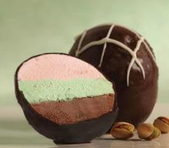 Strawberry, pistachio and chocolate gelato all coated with chocolate and drizzled with white chocolate.