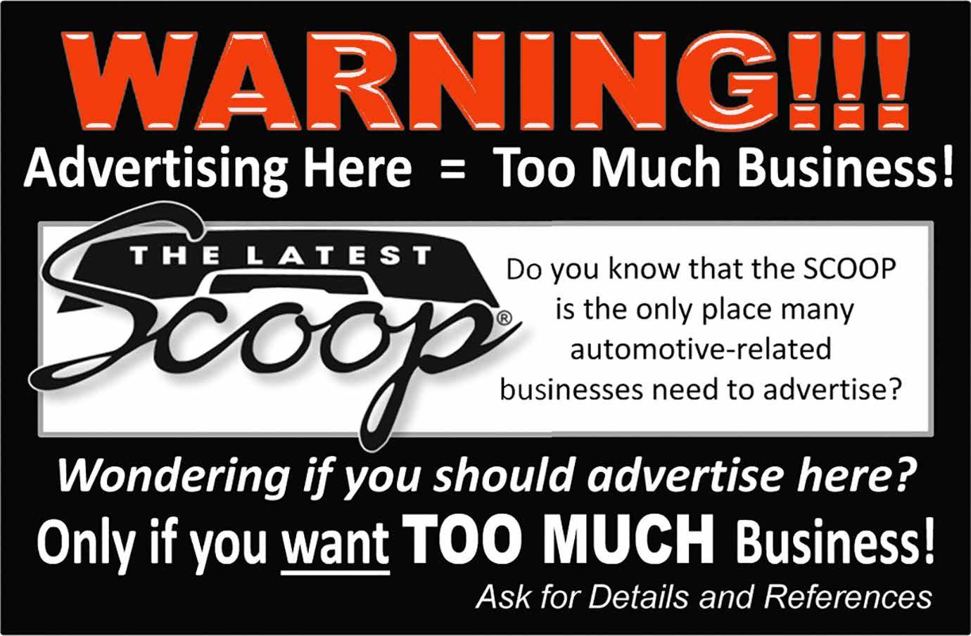 Feedback on THE LATEST SCOOP® is always welcome! We encourage readers to submit letters expressing their ideas and comments to: PO Box 7477, Loveland, CO 80537 or by email at: info@scoopautoevents.com