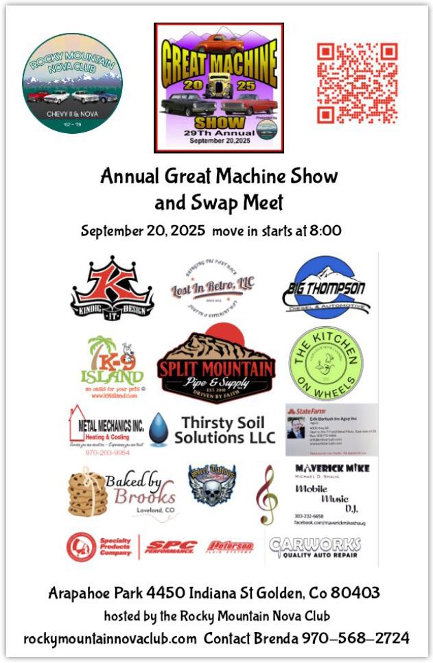 Rocky Mt. Nova Club meets fourth Wednesday at 7pm, GO Chevrolet, I-25 & Hwy 36 in Denver 970-5682724