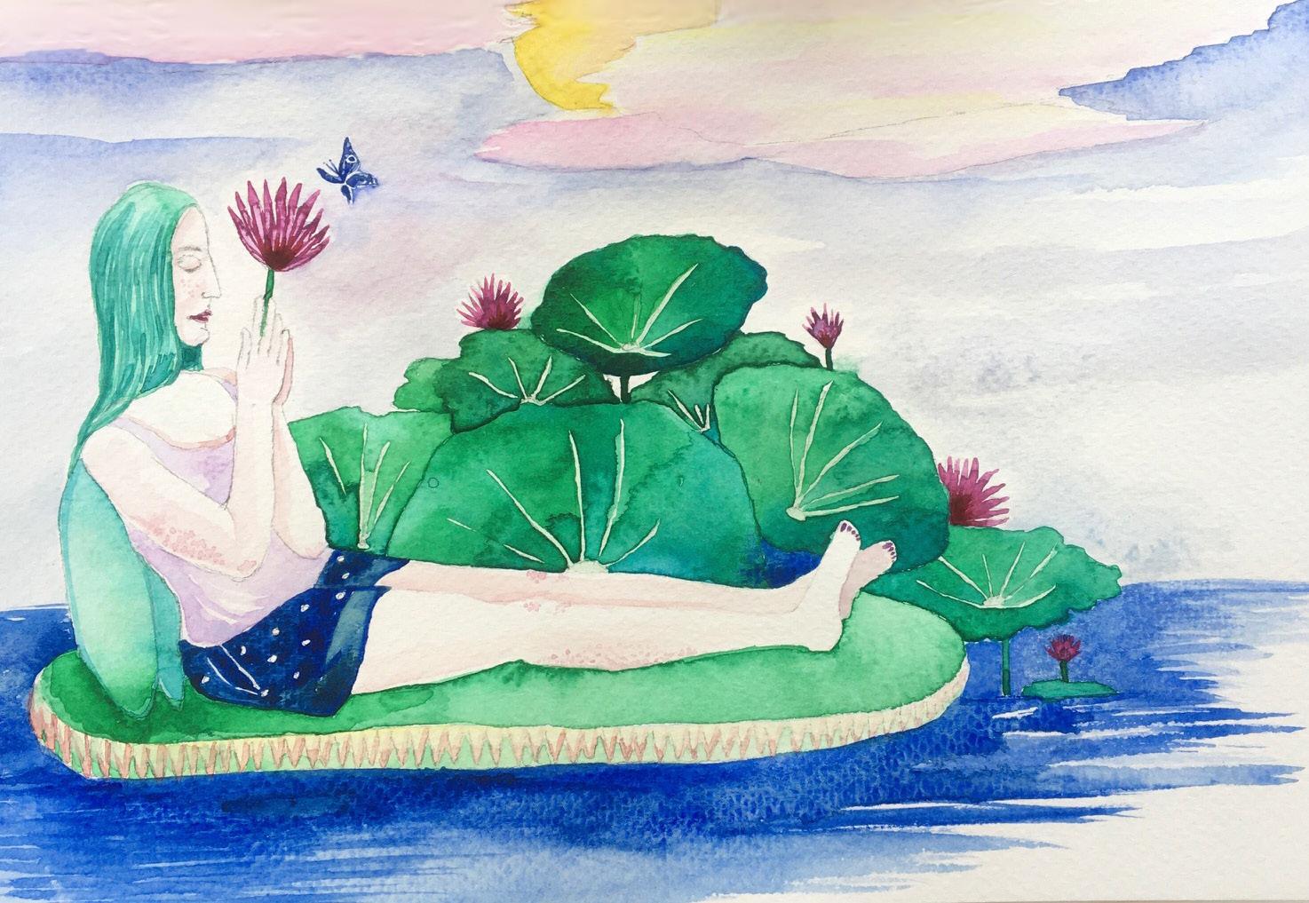 TINSTY (she/her) is a British artist working primarily with ink, acrylic, and mixed media. After traveling and convalescing for five weeks in Thailand, she has been experimenting with watercolor. She is mainly concerned with the ocean and its effects on mental health. She graduated from Central St. Martins School of Art in 2008.