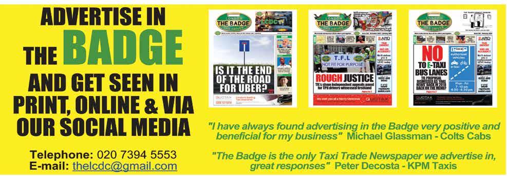 The views expressed in this publication are not necessarily those of the Editor or of the Management Committee of the London Cab Driver’s Club.