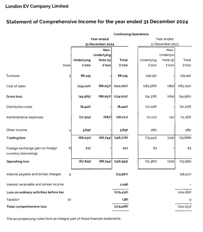 No wonder the LCDC didn’t get a reply to Grant Davis’s letter to LEVC’s Chief Executive last month. The reply was contained in the Company’s 2024 accounts which were issued on 30th September. And quite a bombshell it was too.