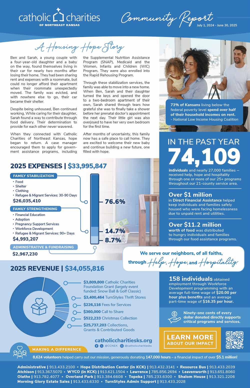 Learn how your donation helps families by visiting the website at: catholiccharitiesks.org/impact.