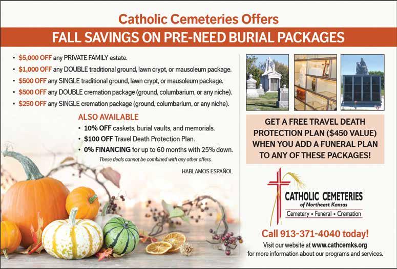 NOVEMBER 11, 2022 | THELEAVEN.ORG 2 LOCAL NEWS LIFE WILL BE VICTORIOUS ARCHBISHOP JOSEPH F. NAUMANN “I am proud to continue the legacy of service my grandfather and father began in 1946.” FUNERAL HOME • CREMATORY • MEMORIAL CHAPELS 10901 Johnson Drive Shawnee, Kansas 66203 Telephone 913-631-5566 Fax 913-631-2236 www.amosfamily.com Gregg Amos SOLUTION Call or text 913-621-2199 NEED HELP HEALING FROM A PAST ABORTION?
