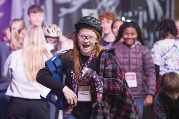 Cami Dalinghaus from Sacred Heart Parish, Emporia, takes part in a mountain climber race which symbolized reaching the summit of the faith — the Eucharist.