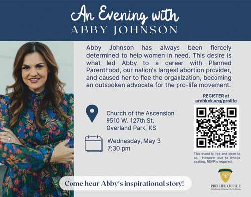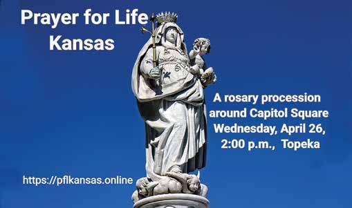 President Most Rev. Joseph F. Naumann Editor Rev. Mark Goldasich, stl frmark.goldasich@theleaven.org Managing Editor Anita McSorley anita.mcsorley@theleaven.org Production/Business Manager Todd Habiger todd.habiger@theleaven.org Senior Reporter Joe Bollig joe.bollig@theleaven.org Advertising Coordinator Beth Blankenship beth.blankenship@theleaven.org Social Media Editor/Reporter Moira Cullings moira.cullings@theleaven.org Published weekly September through May, excepting the Friday the week after Thanksgiving, and the Friday after Christmas; biweekly June through August. Address communications to: The Leaven, 12615 Parallel Pkwy., Kansas City, KS 66109. Phone: (913) 721-1570; fax: (913) 721-5276; or email at: sub@theleaven.org. Postmaster: Send address changes to The Leaven, 12615 Parallel Pkwy., Kansas City, KS 66109. For change of address, provide old and new address and parish. Subscriptions $24/year. Periodicals postage paid at Kansas City, KS 66109. Publication No. (ISSN0194-9799) APRIL 21, 2023 | THELEAVEN.ORG 3 LOCAL NEWS