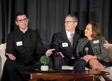 Left, A “Quo Vadis” formal dinner was held by Sacred Heart of Jesus Church on April 7 at the Embassy Suites in Olathe. Couples and families, including Sacred Heart pastor Father Jaime Zarse and his parents Bob and Alicia, shared with the crowd their personal stories of hardship, resilience and faith. Other participants also shared their stories of faith and perseverance.