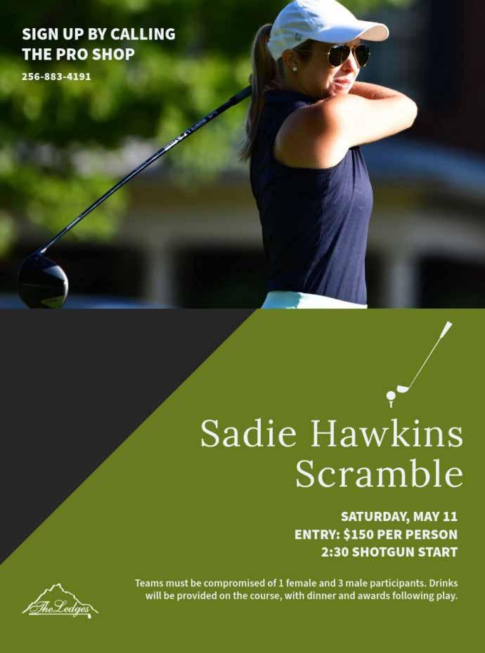 Teams must be composed of 1 female and 3 male participants. Drinks will be provided on the course, with dinner and awards following play.