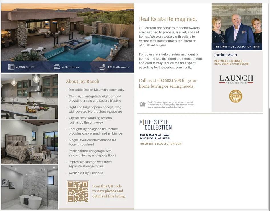 Frustrated with their personal real estate experiences, Jordan and Jan realized they could offer a unique approach for buyers and sellers that blended their extensive business and marketing expertise with Jan’s design vision, aiming to reimagine the traditional real estate business. Along with their daughter Ashley, they formed The Lifestyle Collection to share their vision for real estate and lifestyle.