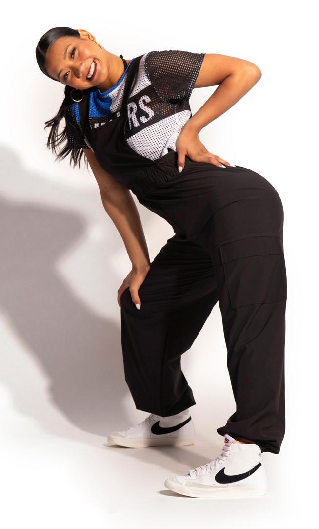 KIMBERLY POP MESH CROP OVERLAY W/ ATTITUDE SHINE BRA W/ LISA CARGO PANTS