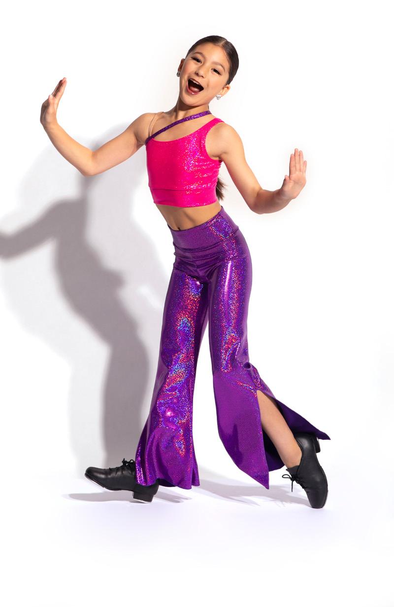 166 SABRINA LONG LINE CROP W/ BELL BOTTOM SLIT HOLOGRAM PANTS