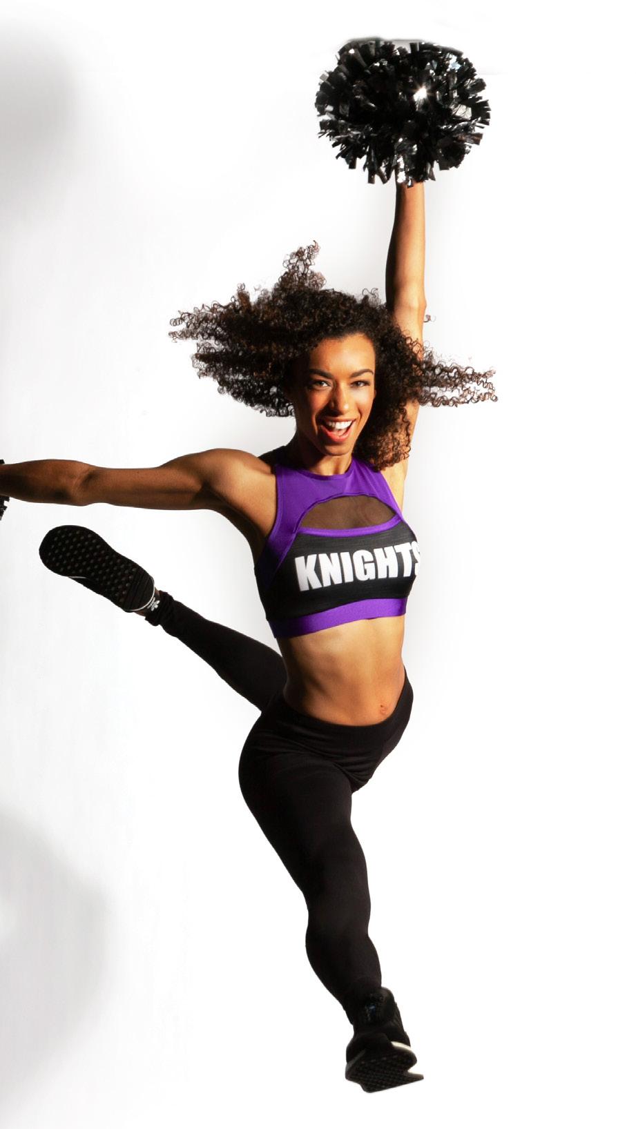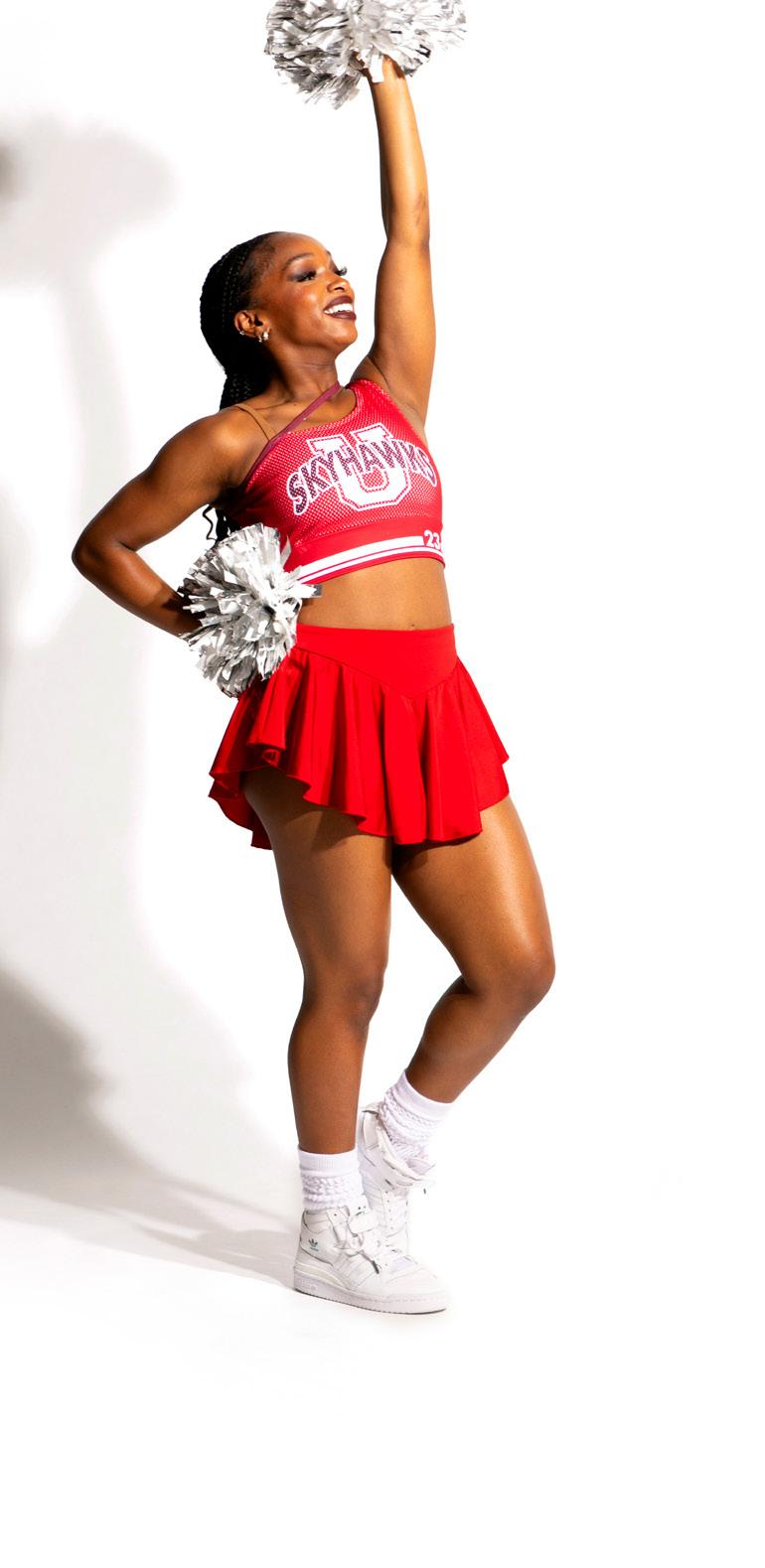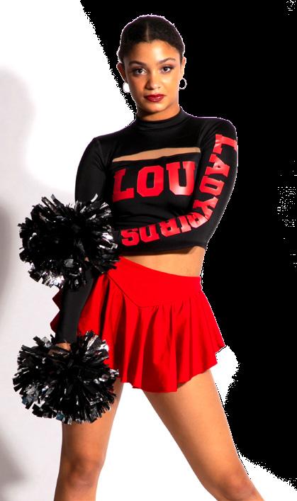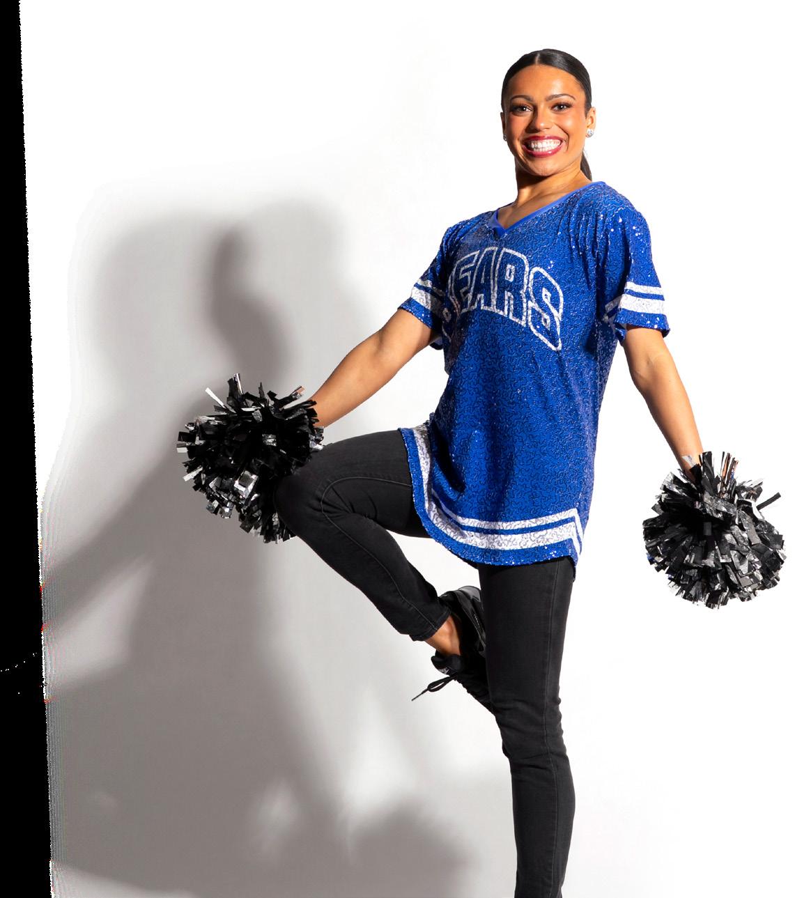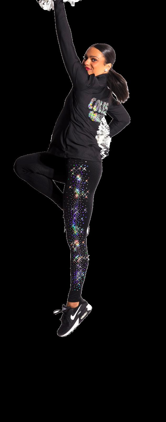 As styled by Saaskatchewan Rider Cheer Team. Shown for design purposes only.
