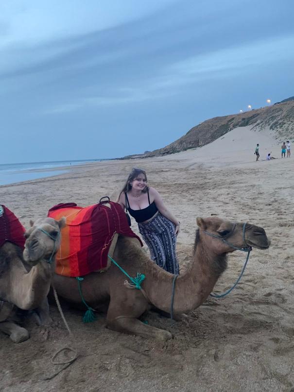 This time, we went via ferry to Tangier, which took about an hour and a half from Algeciras As soon as our boat docked, we went to a beach to ride camels at sunset, which was a very unique experience!